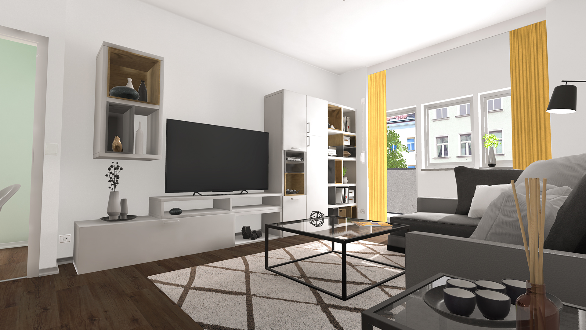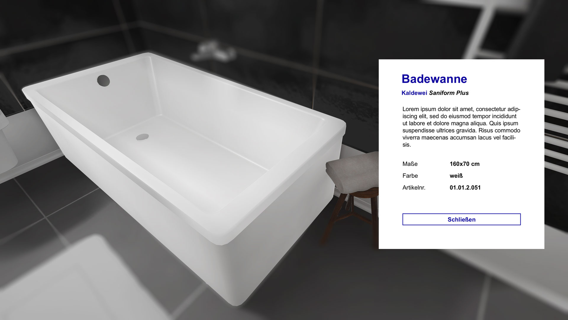 A VR experience allows customers to evaluate their configuration as if it was already installed in reality. The virtual apartment can be toured with or without a set of example furniture, that allows for a more authentic impression of the accommodation.