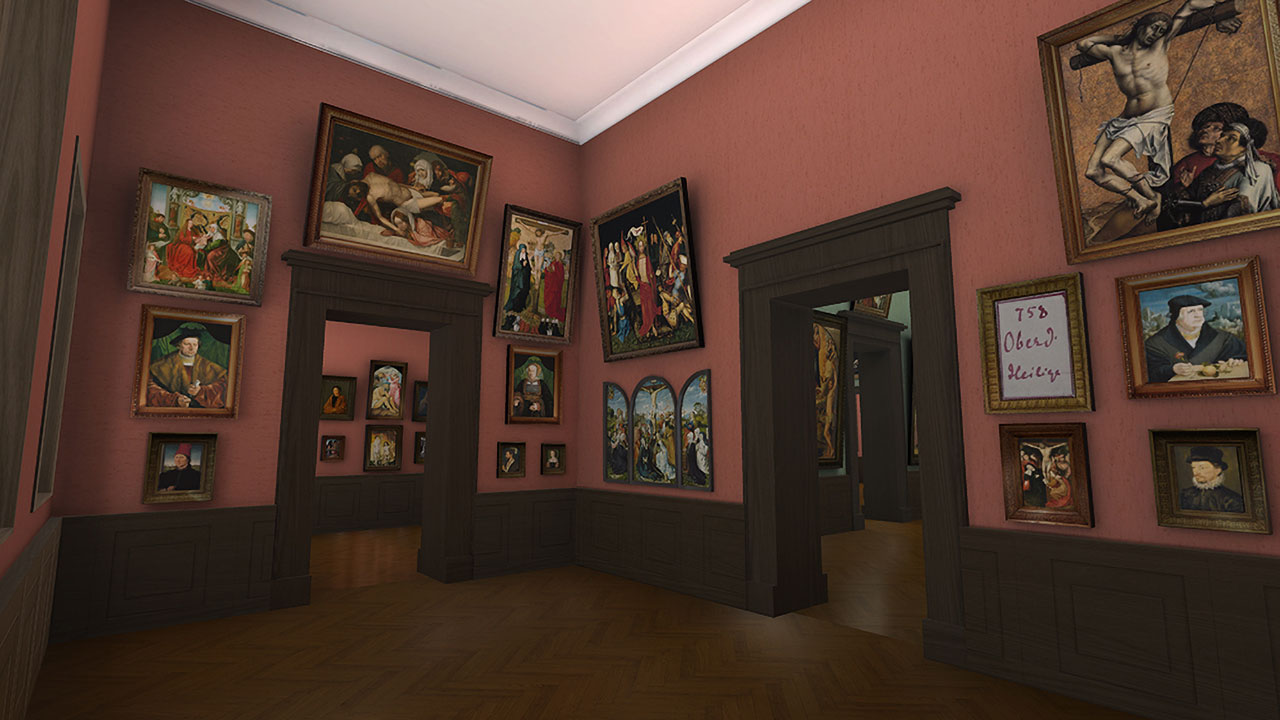In addition to the detailed reconstruction of the architecture and paintings, ambient sound and sound effects, e.g. different footstep sounds for various floor materials, help users feel more grounded in the world. A low-key UI provides additional information to paintings and helps users navigate through the museum while not distracting from the immersive environment.