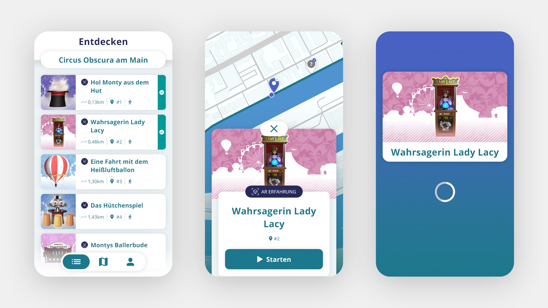 The framework was used to create the Circus Obscura demo tour in Frankfurt as well as the Tour de Grass app for the Günter Grass-Haus in Lübeck. I worked on this project as the lead designer.