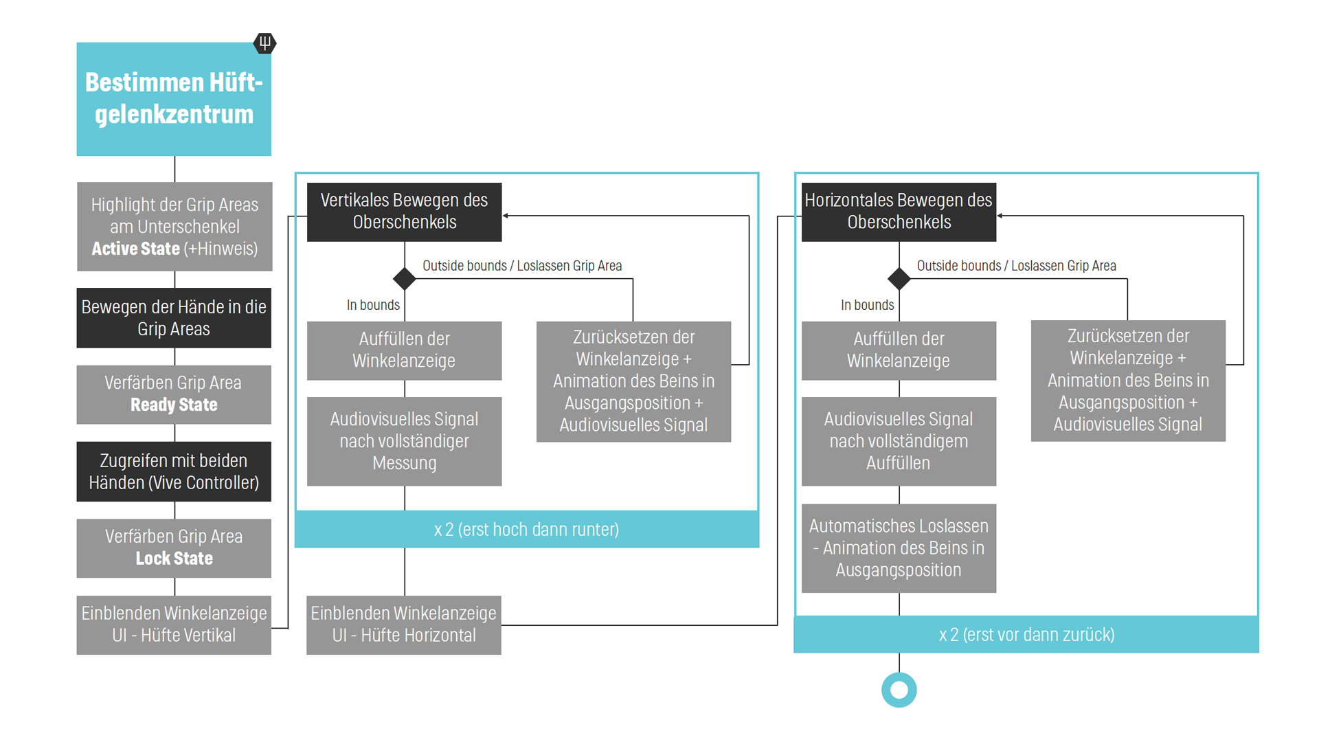 The manipulation of the surgery tools and patient leg, necessary to represent the procedure accurately, was quite complex compared to usual interaction with objects or UI in VR. That made it quite a challenge to translate the process into easy to understand, gamified VR interactions.